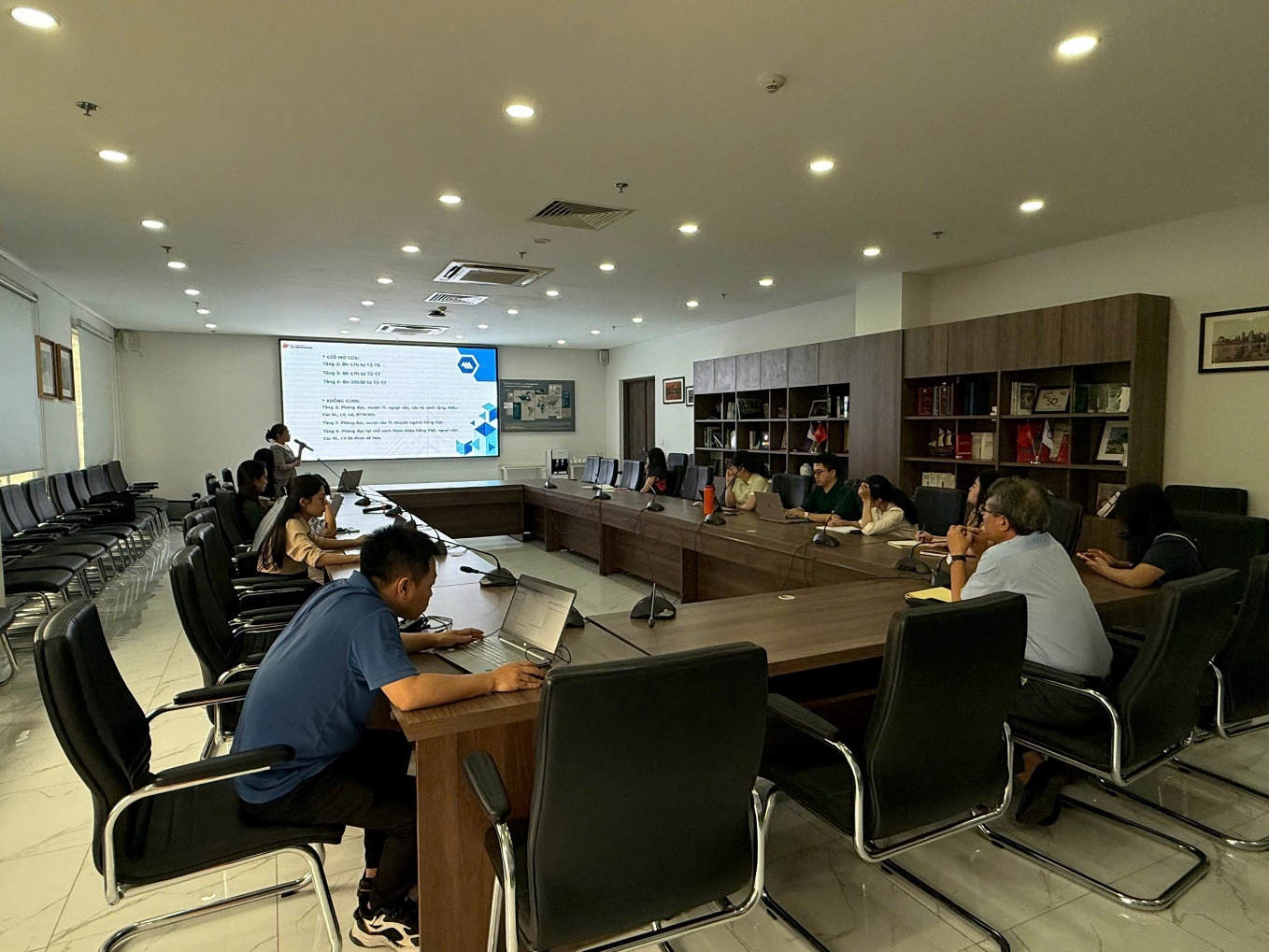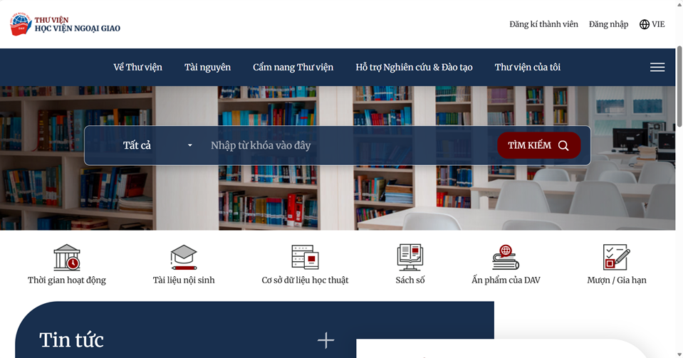 Hướng dẫn kỹ năng sử dụng, khai thác thư viện số Học viện Ngoại giao Nhằm thúc đẩy quá trình chuyển đổi số và nâng cao chất lượng hoạt động nghiên cứu, giảng dạy, Ban Khoa học, Thông tin và Tạp chí Nghiên cứu Quốc tế đãđưa vào vận hành website thư viện số mới tại địa chỉ https://lib.dav.edu.vn . Sự kiện này đánh dấu một bước tiến quan trọng trong quy trình hiện đại hóa Thư viện Học viện Ngoại giao (DAV), góp phần xây dựng môi trường học thuật hiện đại, tiện ích và hiệu quả hơn cho sinh viên cũng như giảng viên và các bạn đọc sử dụng. Trải qua quá trình phát triển kể từ khi thành lập năm 1959, Thư viện DAV luôn chú trọng trong công tác đổi mới, nâng cấp cả về cơ sở vật chất và hạ tầng công nghệ. Trong giai đoạn 2021–2022, thư viện đã mở rộng không gian lên ba tầng, đồng thời triển khai phần mềm quản lý Libol 8.0 và ứng dụng Libol Bookworm 9.0, tạo nền tảng quan trọng cho quá trình số hóa và quản lý tài nguyên. Tiếp nối đà phát triển, dự án hợp tác quốc tế do Hàn Quốc tài trợ “Tăng cường năng lực đào tạo và nghiên cứu bằng nguồn vốn ODA và vốn đối ứng tại HVNG” trong giai đoạn 2023–2026 đang tiếp tục góp phần nâng cao năng lực đào tạo và nghiên cứu của thư viện. Hiện nay, hệ thống tài nguyên số của DAV ngày càng được hoàn thiện với nguồn dữ liệu học thuật phong phú, đáp ứng đa dạng nhu cầu học tập và nghiên cứu. Người dùng có thể truy cập các cơ sở dữ liệu quốc tế uy tín như Proquest Central (triển khai từ tháng 2/2023), Vital Source, Nasati và EBSCO,... Bên cạnh đó, kho tài liệu số bao gồm sách tham khảo, khóa luận, luận văn và luận án đã được số hóa, cho phép tra cứu trực tuyến nhanh chóng, thuận tiện. Ngoài ra, ứng dụng sách điện tử Vital Source cũng mang lại trải nghiệm đọc hiện đại, linh hoạt trên nhiều thiết bị. Trang chủ của website thư viện số mới Ngày 17/4/2026 tại phòng Pháp Ngữ D415nhằm hỗ trợ cán bộ, giảng viên và sinh viên khai thác hiệu quả các nguồn tài nguyên này, Thư viện DAV đã tổ chức một buổi hướng dẫn kỹ năng sử dụng và khai thác thư viện số. Tham dự chương trình có Thầy Nguyễn Vũ Tùng, cô Lê Thị Ngọc Hân... cùng các cán bộ, giảng viênHọc viện. Tại buổi hướng dẫn, người tham dự được giới thiệu chi tiết về giao diện website mới, quy trình tra cứu tài liệu cũng như các kỹ năng khai thác chuyên sâu các cơ sở dữ liệu học thuật đồng thời hướng dẫn cách người dùng có thể truy cập vào cơ sở dữ liệu Proquest, Nasati, Vital Source, EBSCO cả trong và ngoài khuôn viên Học viện thông qua tài khoản cá nhân đã được cấp. Buổi hướng dẫn đã nhận về được nhiều sự quan tâm và tham gia tích cực của một số cán bộ, giảng viên. Hoạt động này không chỉ góp phần nâng cao tính chủ động trong học tập và nghiên cứu mà còn tạo tiền đề quan trọng cho việc phát triển môi trường học thuật số tại Học viện. Tại buổi hướng dẫn về kỹ năng khai thác thư viện số mới Trong giai đoạn tiếp theo từ 2026-2030, Thư viện DAV tiếp tục đặt ra các mục tiêu về mở rộng nguồn tài nguyên, xây dựng hệ thống thư viện số chất lượng cao và đa dạng hóa dịch vụ. Việc trang bị kỹ năng khai thác thư viện số không chỉ giúp người dùng tiếp cận hiệu quả kho tri thức toàn cầu mà còn là yếu tố quan trọng nâng cao năng lực học thuật và khả năng hội nhập quốc tế.